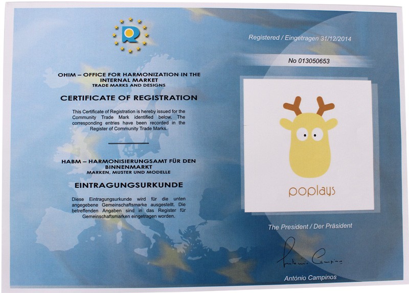历时八个月的时间,杭州华人普雷森文化创意有限公司“鹿头形+Poplays”组合商标成功在欧盟注册,这标志着普雷森品牌迈出了向欧洲大陆进军的第一步。借着纽伦堡玩具展的劲头,年轻的普雷森团队将一鼓作气使“Poplays”品牌走进更多欧洲家庭。