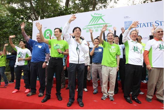 11月16日,香港食物及卫生局局长高永文医生、残奥会轮椅剑击金牌得主余翠怡小姐、乐施毅行者筹委会主席陈智思先生、乐施毅行者全球赞助机构道富集团代表ThomasLynch先生、乐施会总裁余志稳博士在活动起点西贡北潭涌主持起步礼,并为参加者打气。