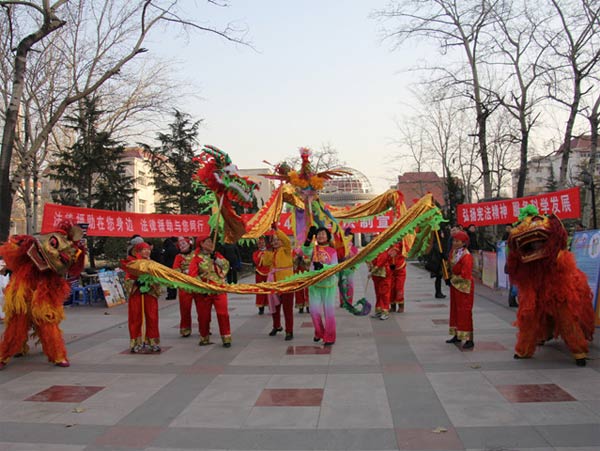 此次普法宣传的开幕式是由大营门街道的老同志们组成的舞龙队表演的“龙凤呈祥”,老同志们以热情高涨的表演表达了对今年主题为“弘扬宪法精神,服务科学发展”的法制宣传日的支持。之后各单位有条不紊的进行普法宣传活动,律师们热情解答了咨询者关于婚姻家庭、遗嘱订立、房屋买卖等各方面的法律问题。