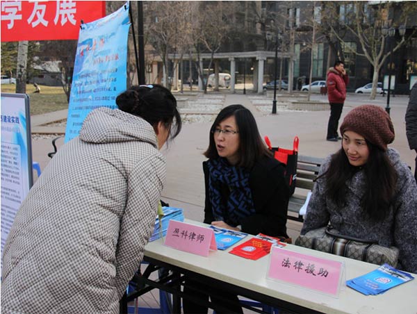 图为天津办公室朱晓丽律师、崔云玲律师为咨询者提供法律援助