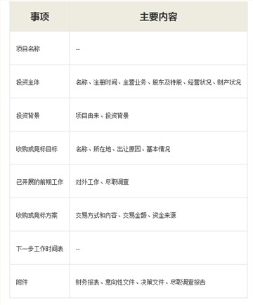 2016年12月5日,国家发改委下发《关于调整境外收购或竞标项目信息报告报送格式的通知》(发改办外资[2016]2613号),该通知规定,自12月5日起境内企业境外收购的信息报告需按照新的报告格式进行上报。新的报告格式的内容摘要如下: